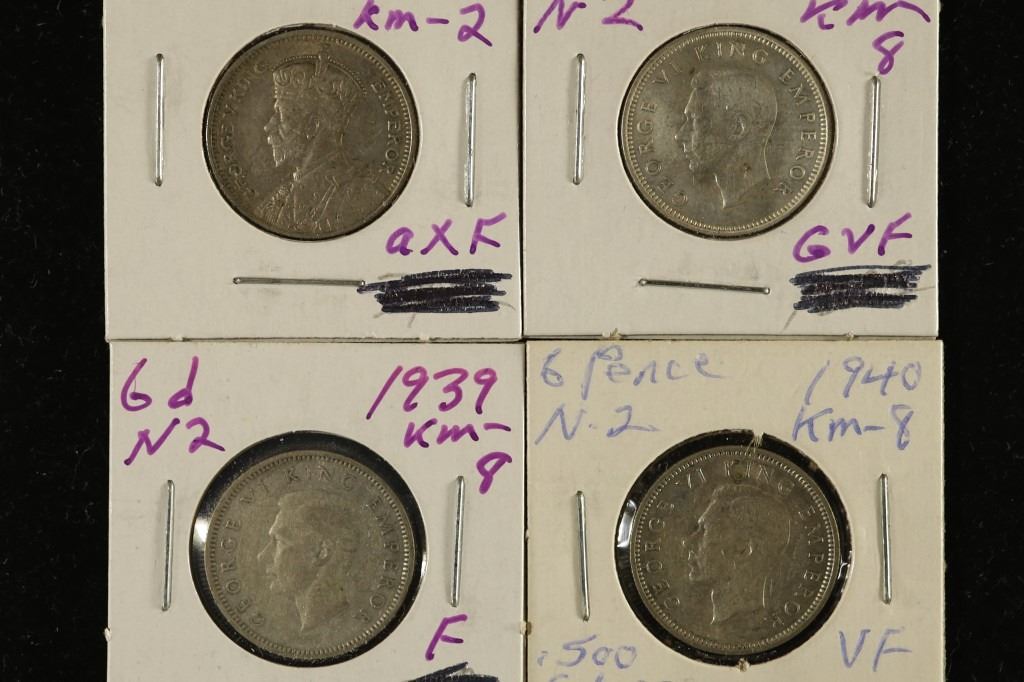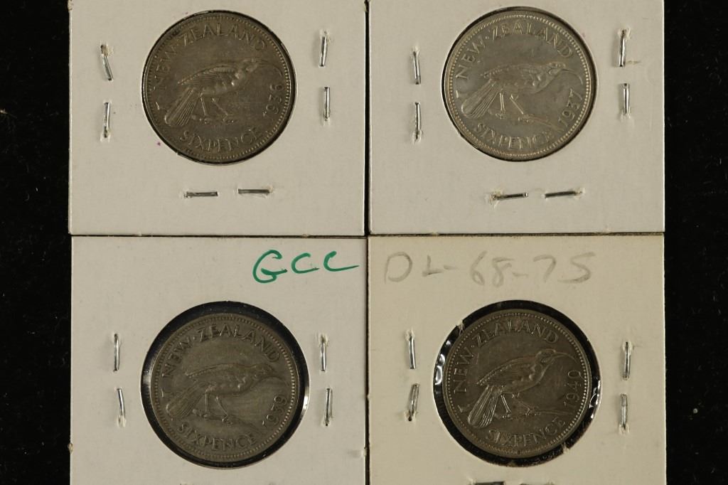 #263 Lot 263 1936, 37, 39 & 1940 NEW ZEALAND SILVER 6 PENCE
