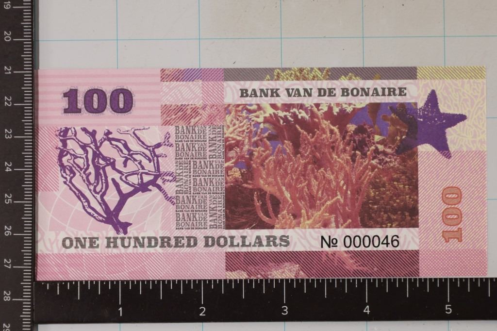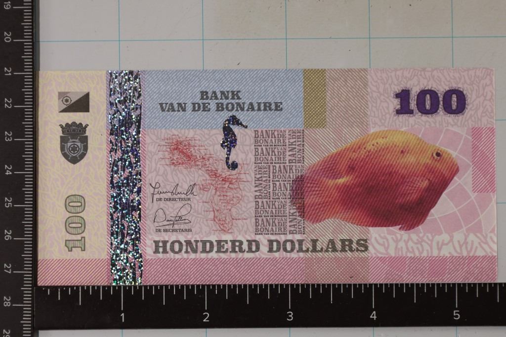 #275 Lot 275 BANK VAN DE BONAIRE $100 CRISP UNC COLORIZED BILL