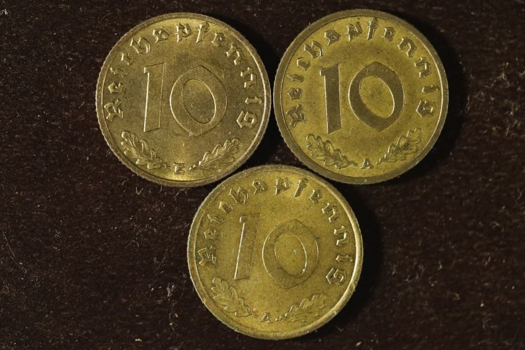 #278 Lot 278 1938-A, 1938-E AND 1939-A GERMAN 10 PFENNIGS