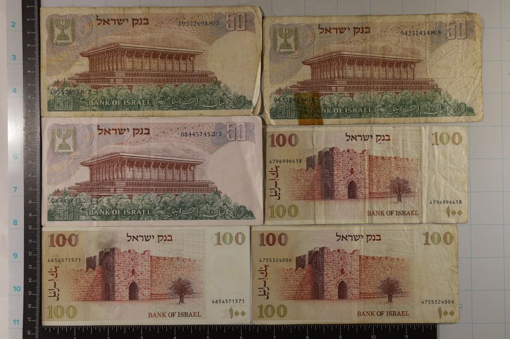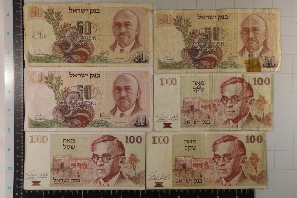 #300 Lot 300 6-ISRAEL BILLS: 3-1968 50 LIROT AND 3-1979-100