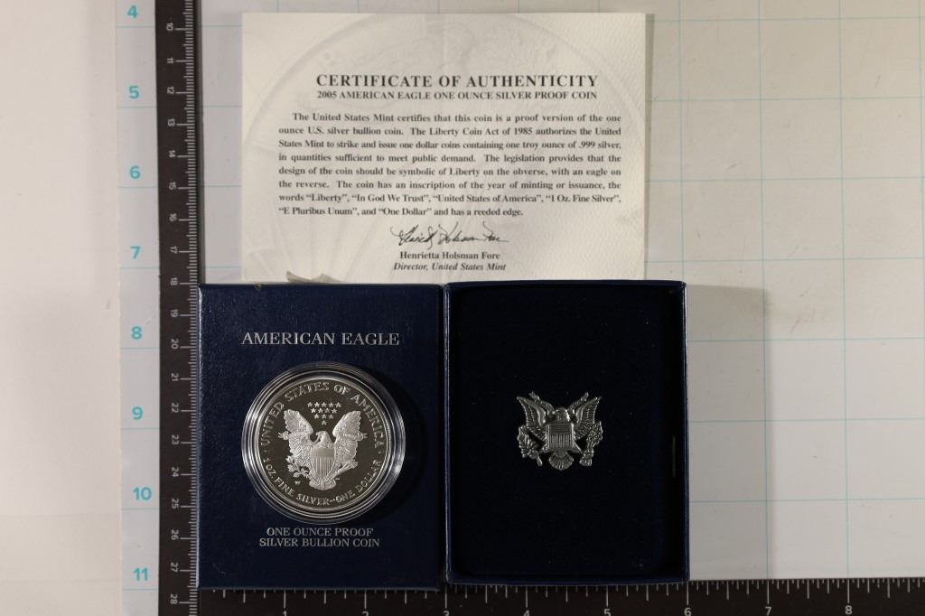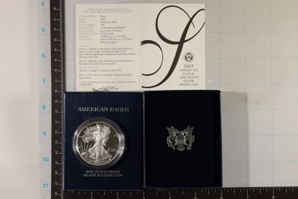#319 Lot 319 2005-W PROOF AMERICAN SILVER EAGLE WITH CERT.
