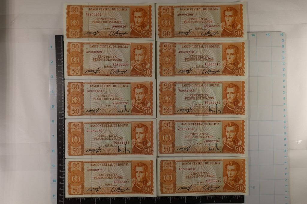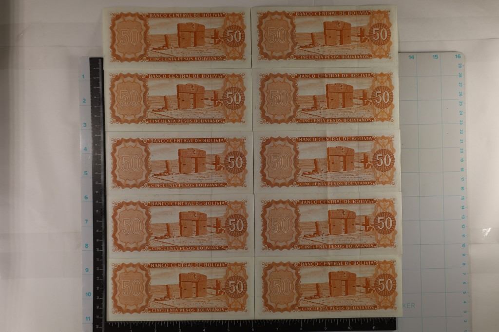 #320 Lot 320 10-1962 BOLIVIA CRISP UNC 50 PESO BILLS. 1 SET OF2