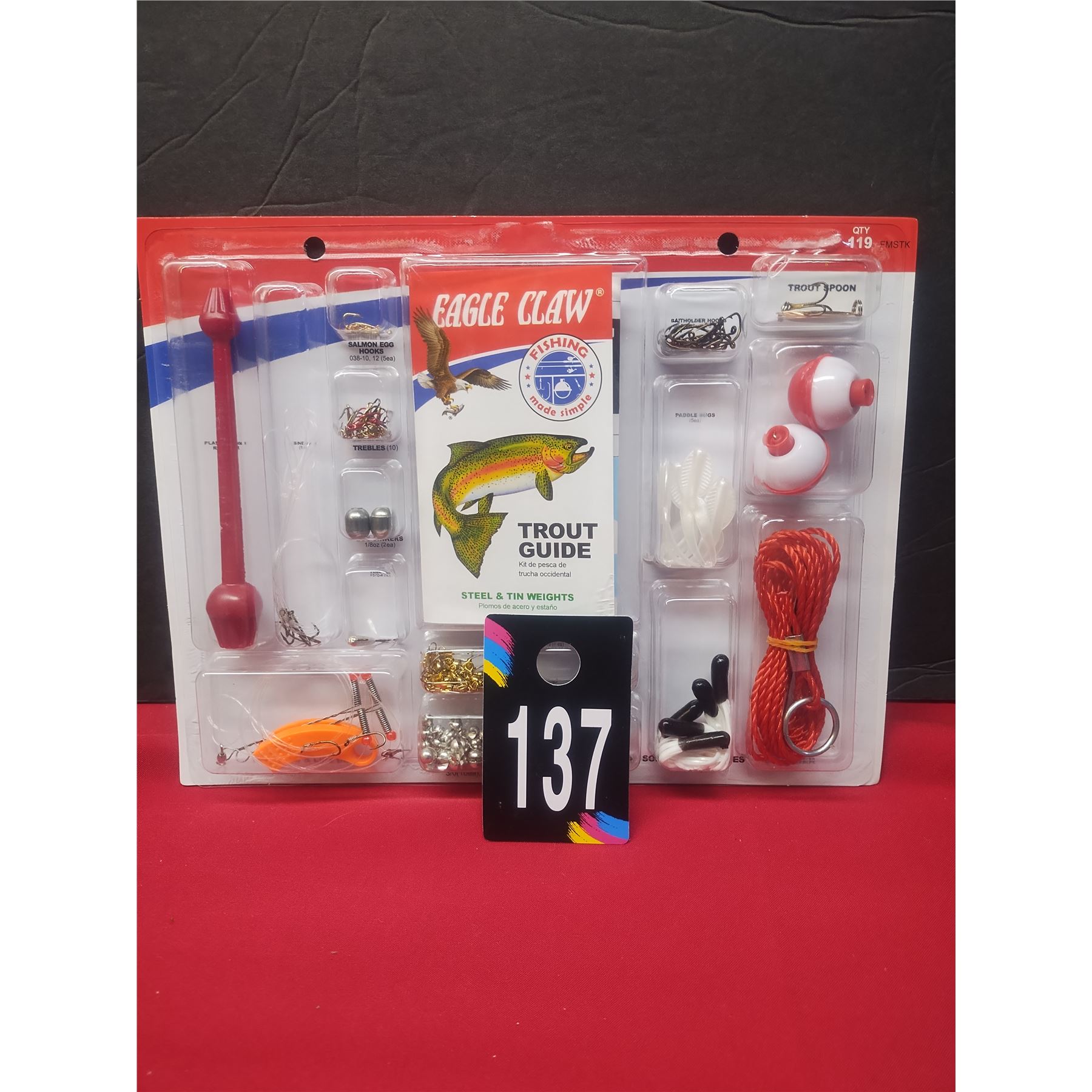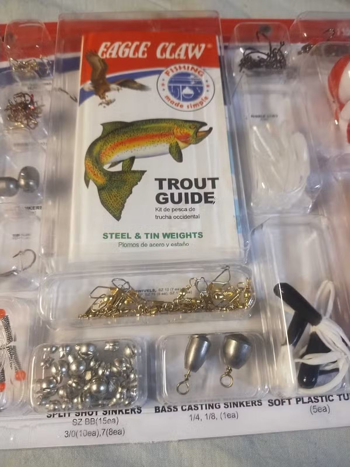 Brand new eagle claw trout fishing kit, comes with 119 pieces, see photos of what's included.