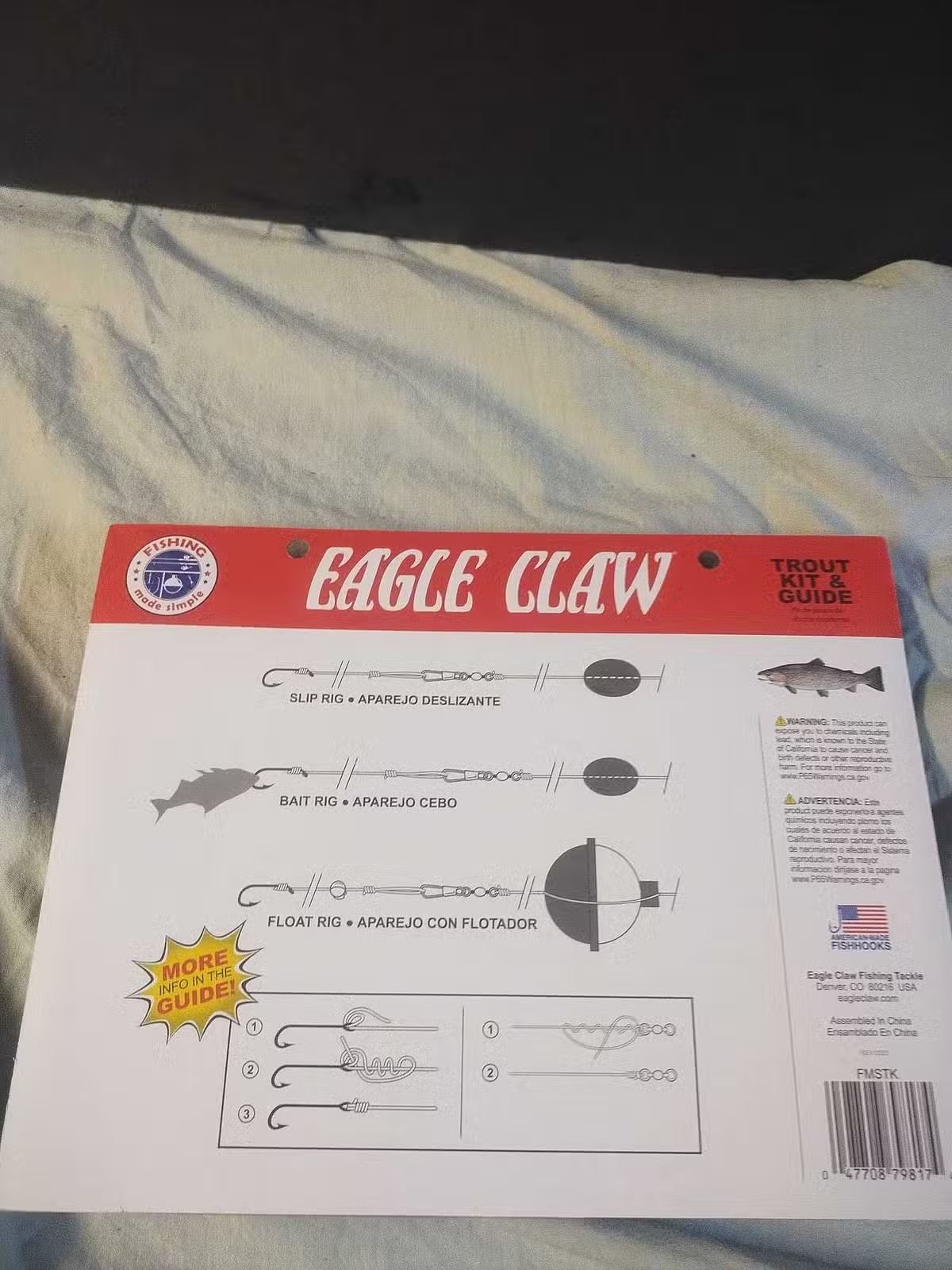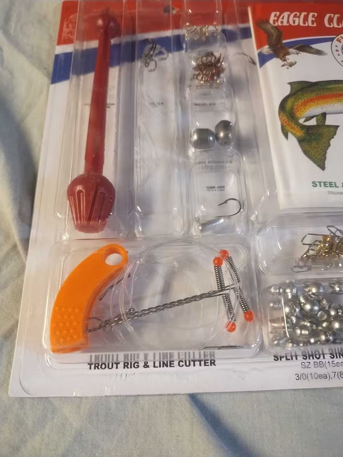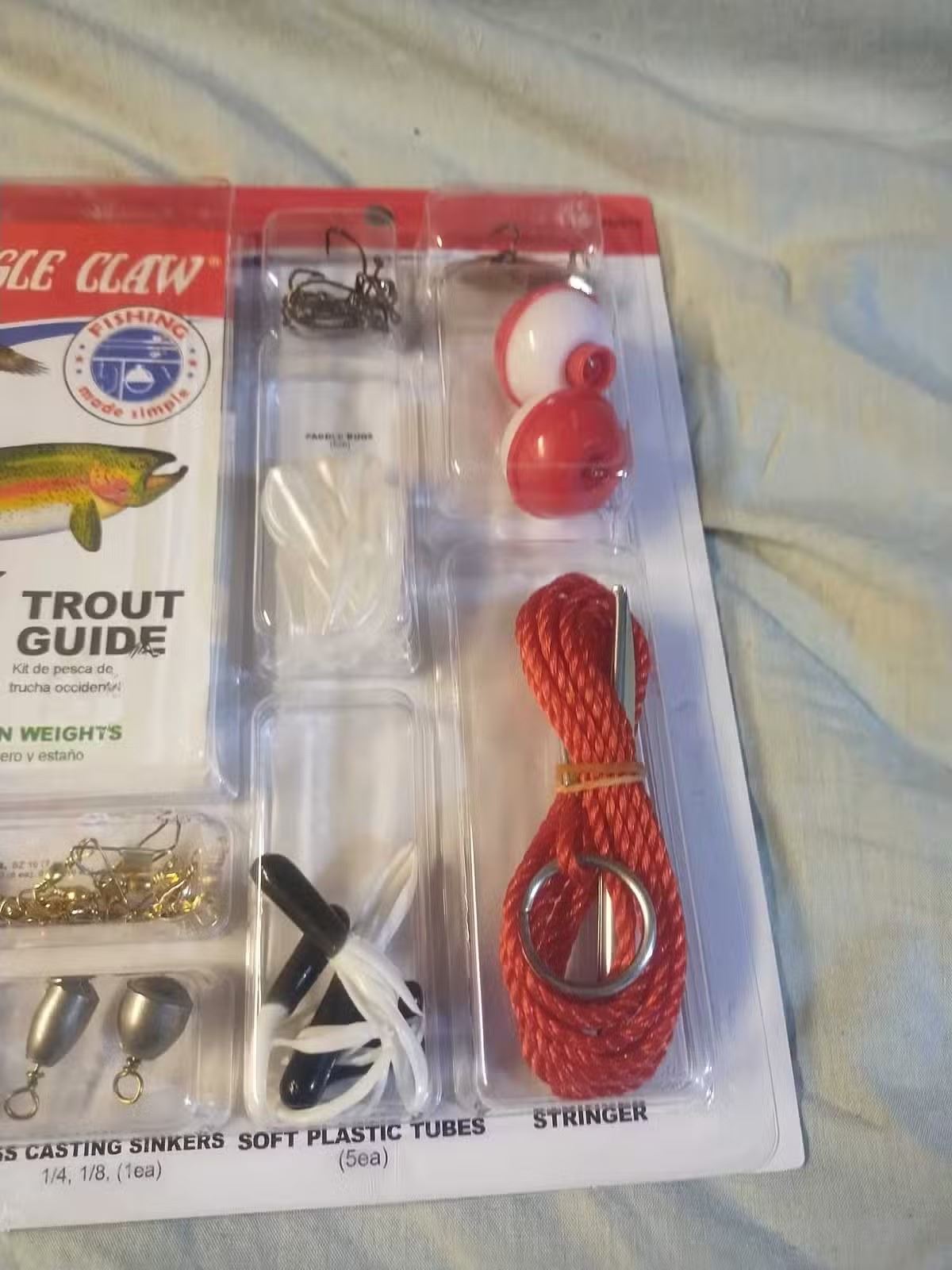 Brand new eagle claw trout fishing kit, comes with 119 pieces, see photos of what's included.