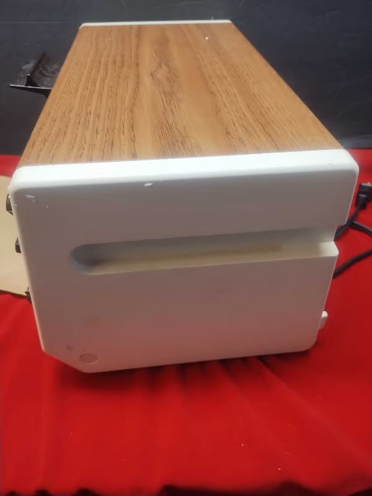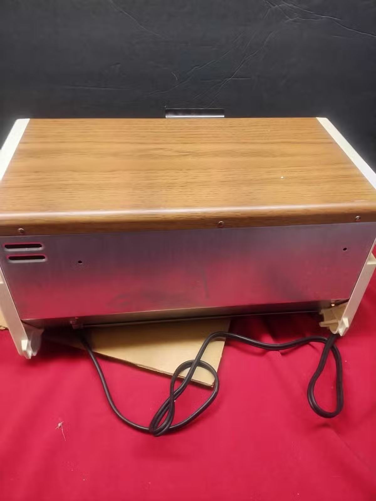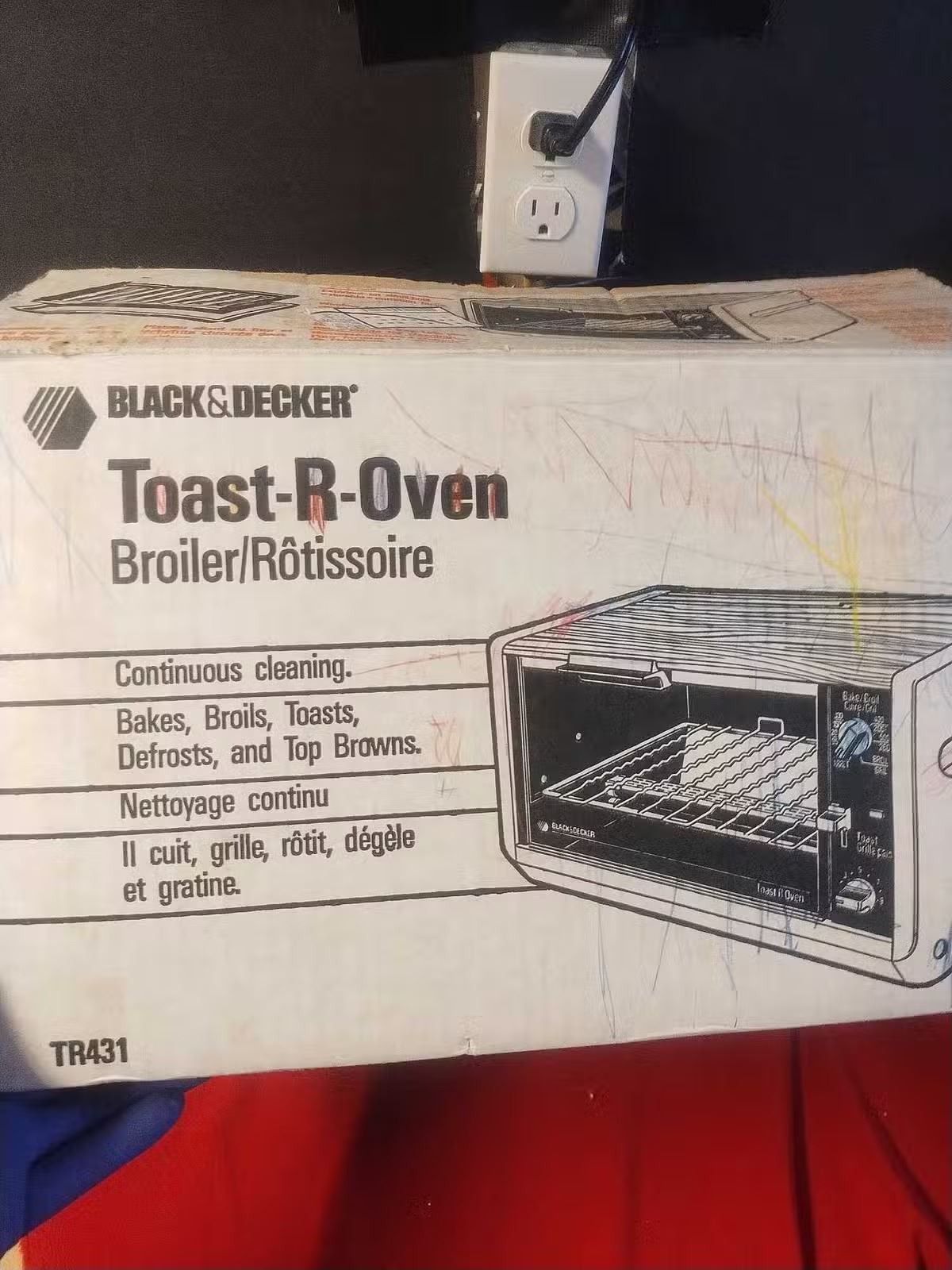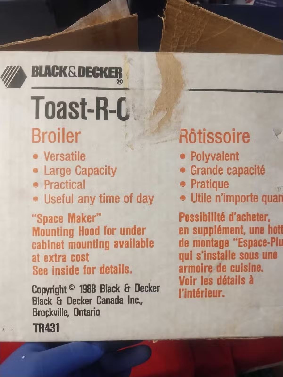 Great little barely used black & decker toaster oven from 1988, there is staining from what I assume was cause was sat beside a stove, inside and bottom are very clean, is in good working order and is a very rare find to see it in the original packaging and in new shape.