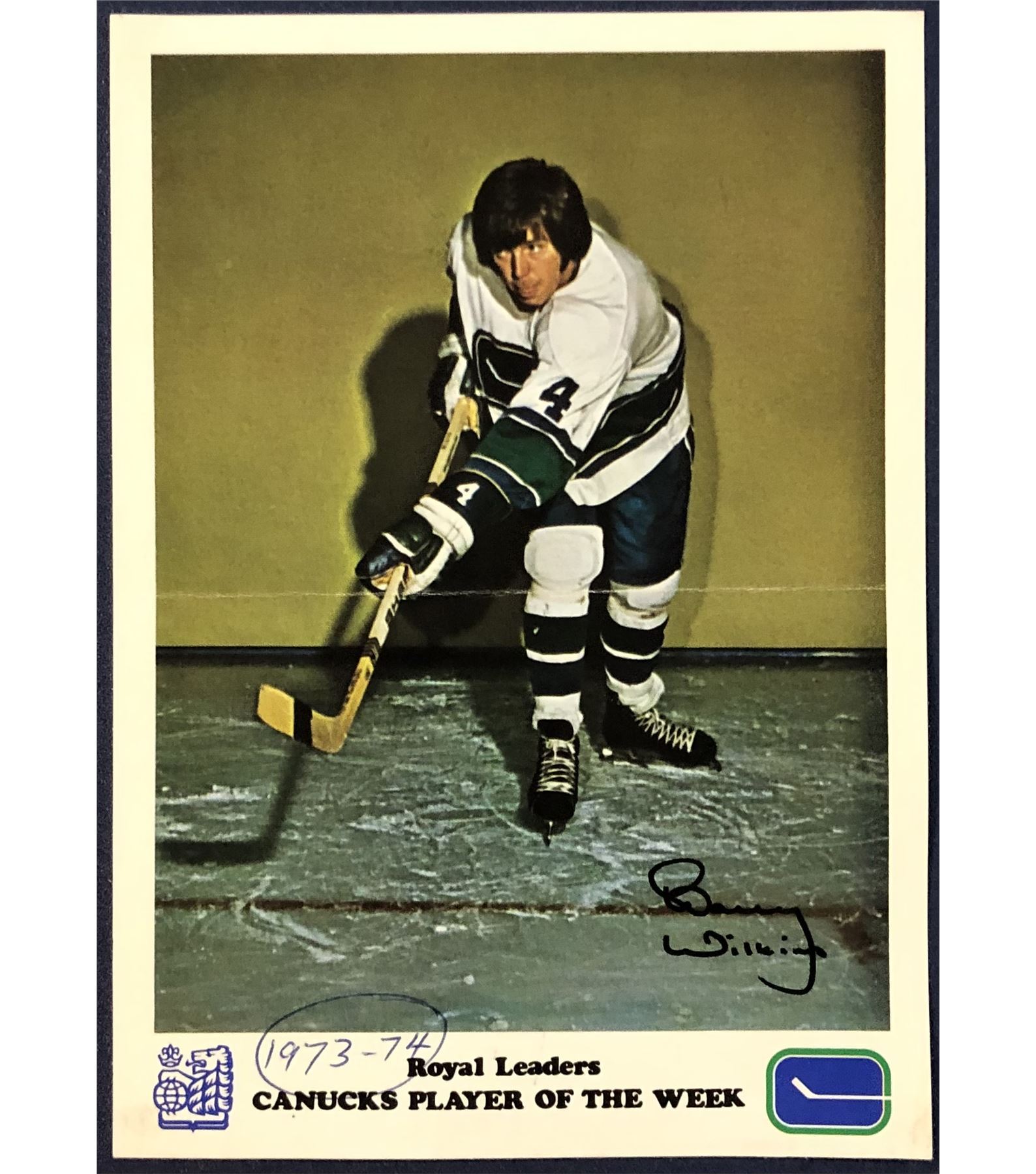Lot 10 1973-74 ROYAL BANK VANCOUVER CANUCKS - BARRY WILKINS