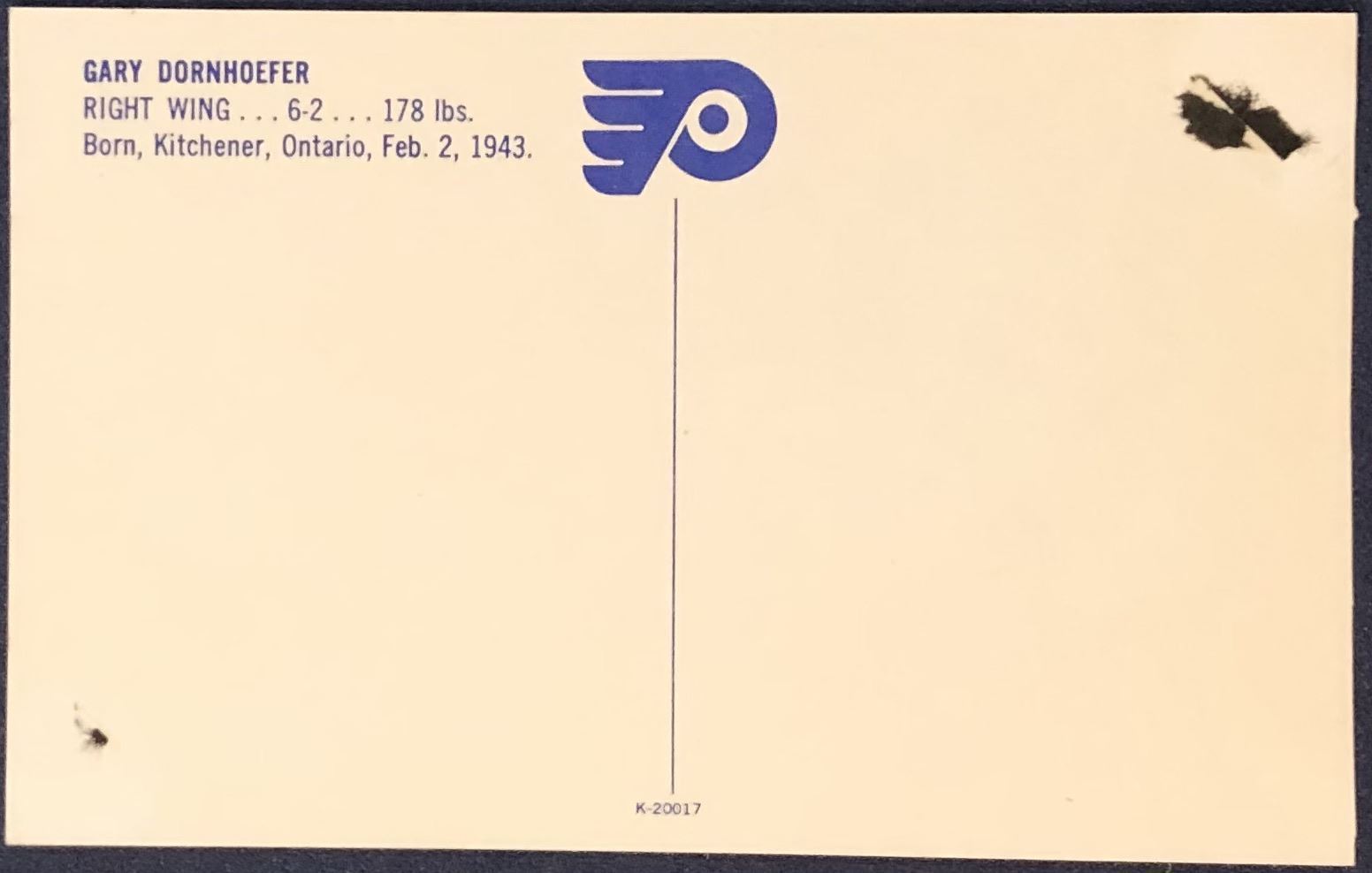 Lot 22 NHL PHILADELPHIA FLYERS 3.5"x5.5" POSTCARD - GARY DORNHOEFER