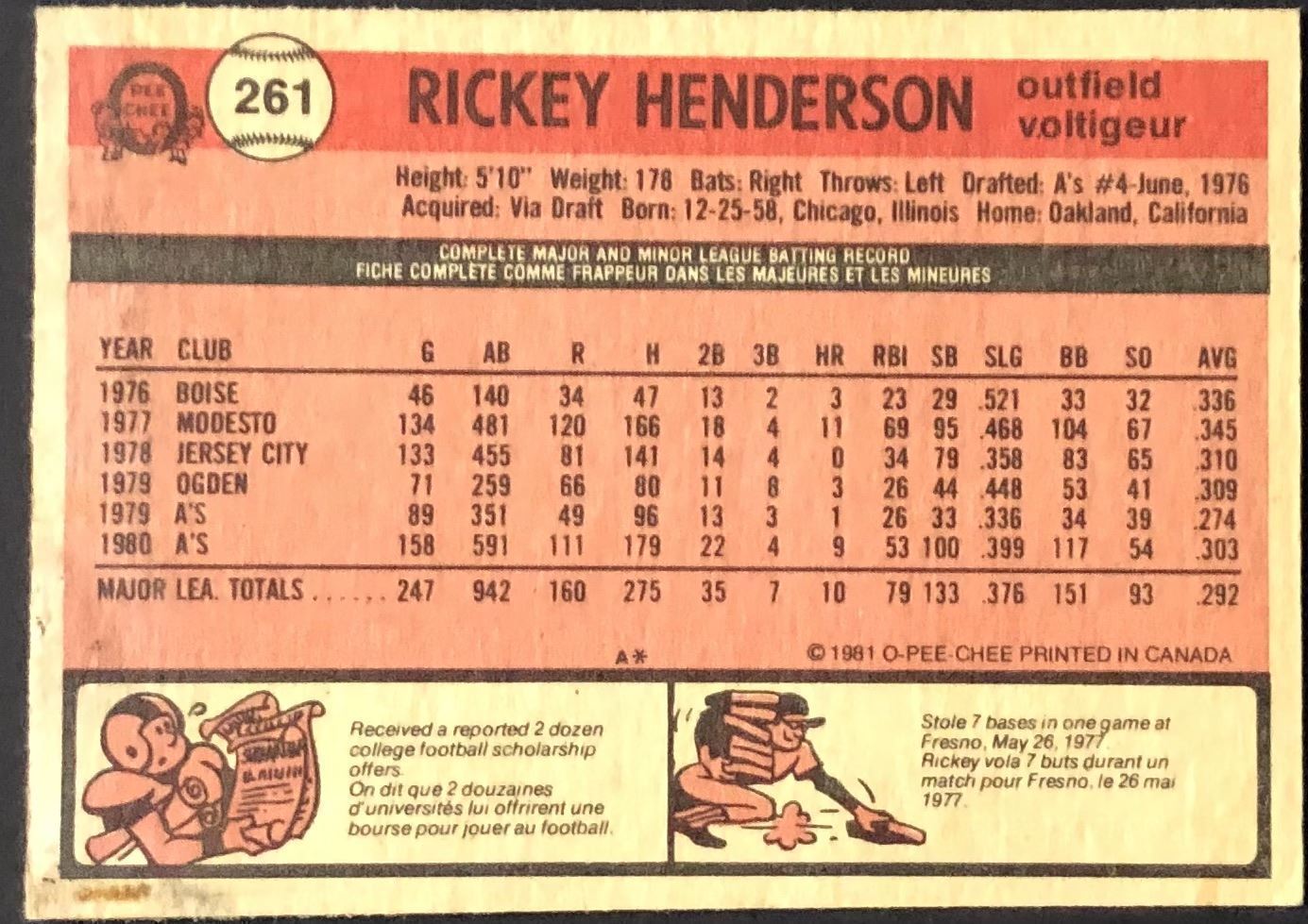 Lot 26 1981 O-PEE-CHEE RICKEY HENDERSON (HOF) ROOKIE CARD