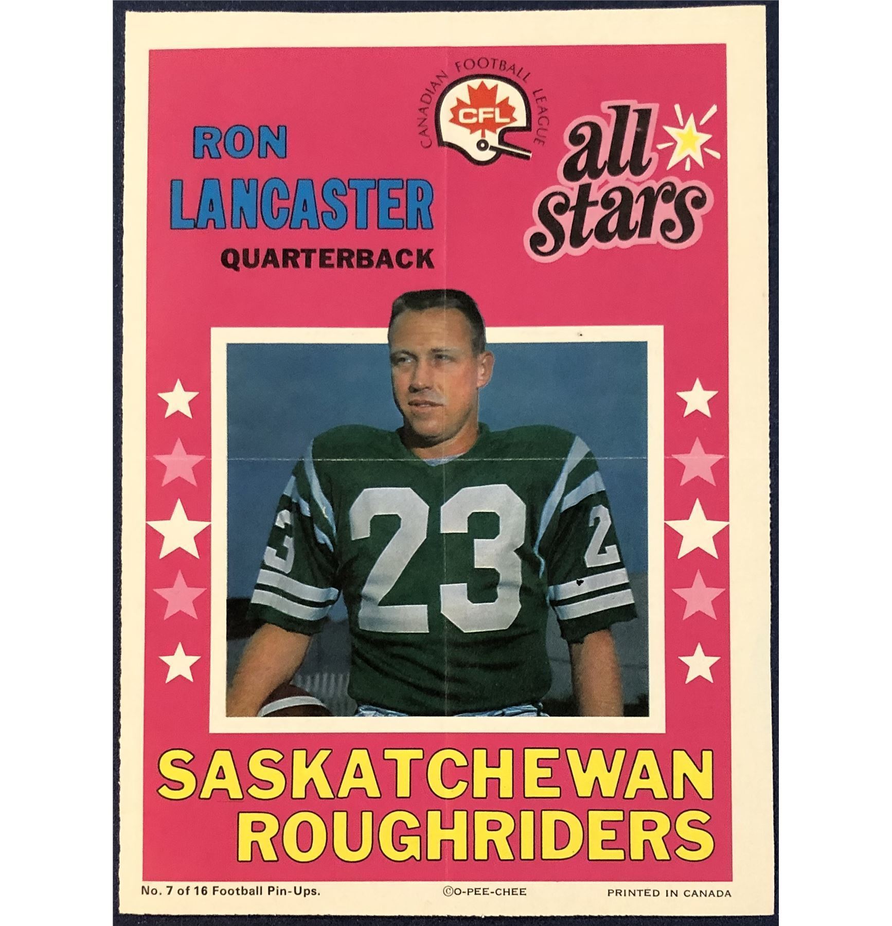 Lot 32 1971 O-PEE-CHEE CFL POSTER - RON LANCASTER (HOF)