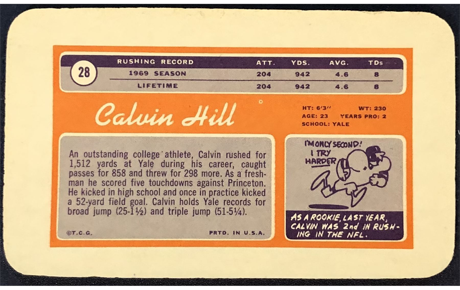 Lot 34 1970 TOPPS SUPER FOOTBALL CALVIN HILL ROOKIE CARD