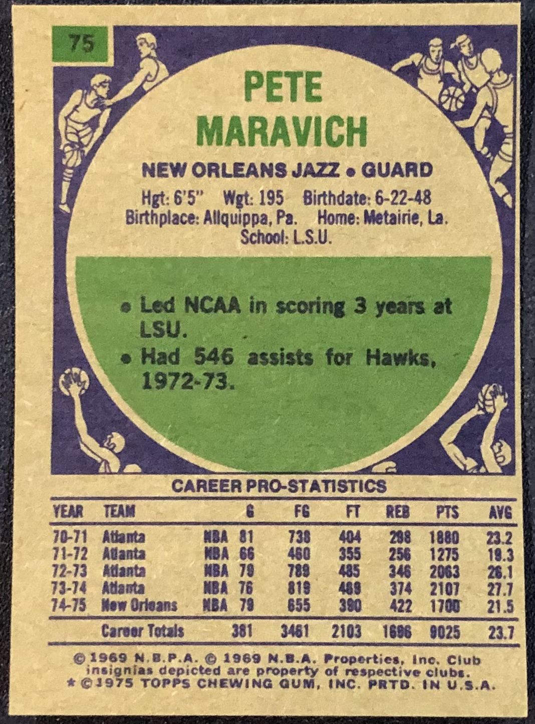 Lot 37 1975-76 TOPPS PETE MARAVICH (HOF)