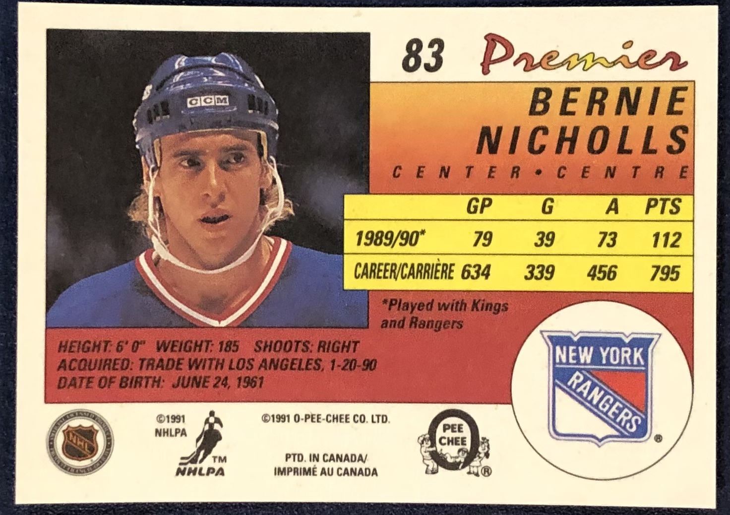 Lot 63 1990-91 O-PEE-CHEE PREMIER NHL BERNIE NICHOLLS