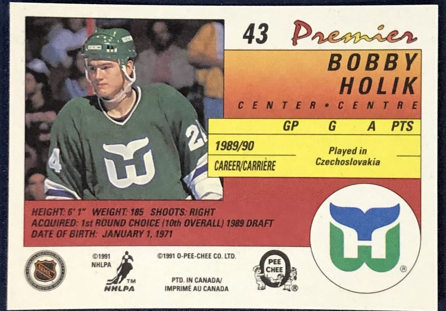 Lot 65 1990-91 O-PEE-CHEE PREMIER NHL BOBBY HOLIK ROOKIE CARD