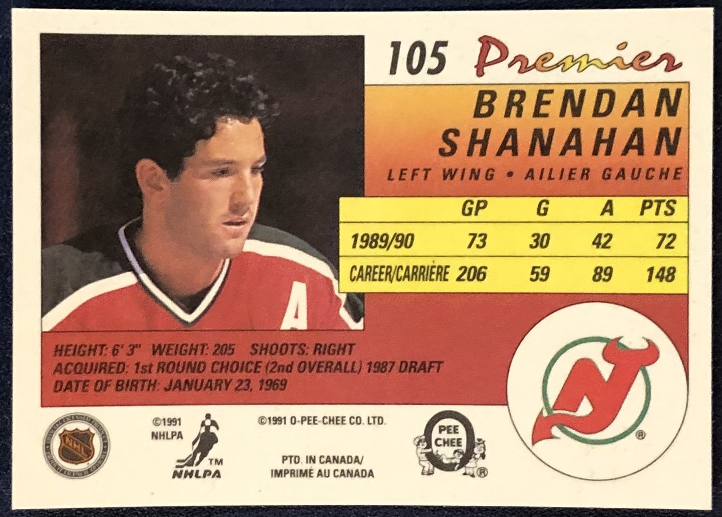Lot 66 1990-91 O-PEE-CHEE PREMIER NHL BRENDAN SHANAHAN (HOF)