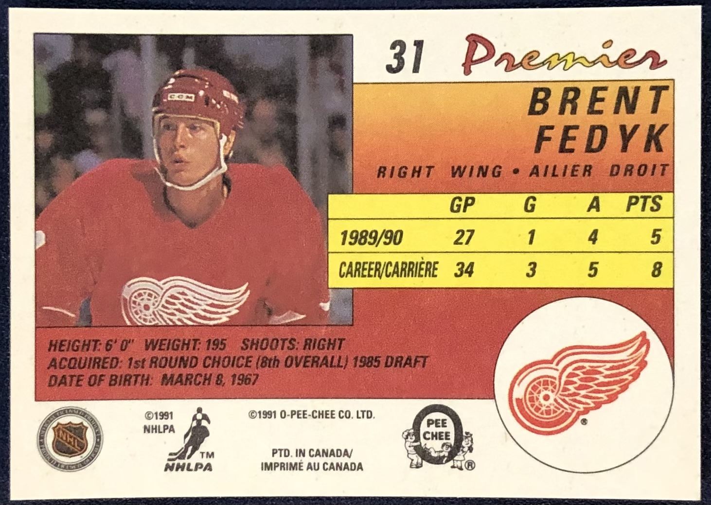 Lot 67 1990-91 O-PEE-CHEE PREMIER NHL BRENT FEDYK ROOKIE CARD