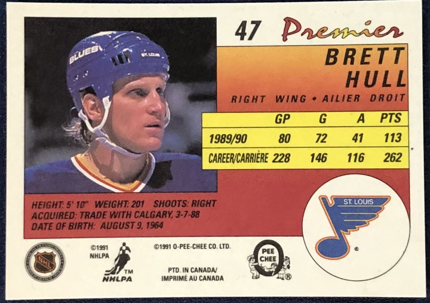 Lot 68 1990-91 O-PEE-CHEE PREMIER NHL BRETT HULL (HOF)