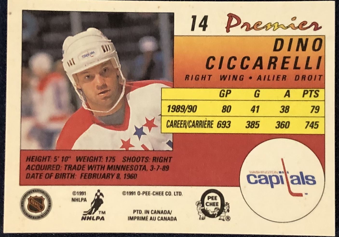 Lot 77 1990-91 O-PEE-CHEE PREMIER NHL DINO CICCARELLI (HOF)