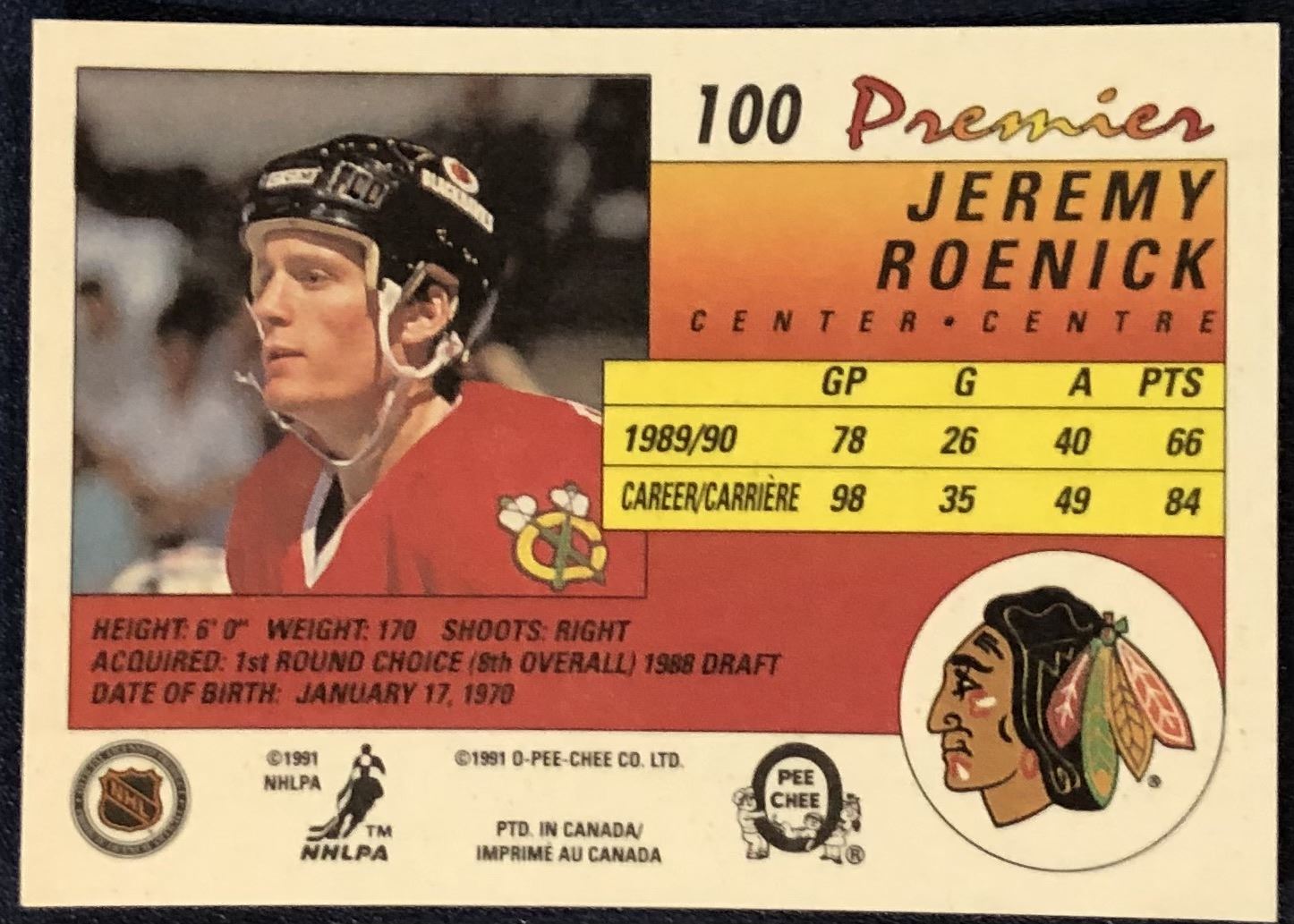 Lot 83 1990-91 O-PEE-CHEE PREMIER NHL JEREMY ROENICK (HOF)