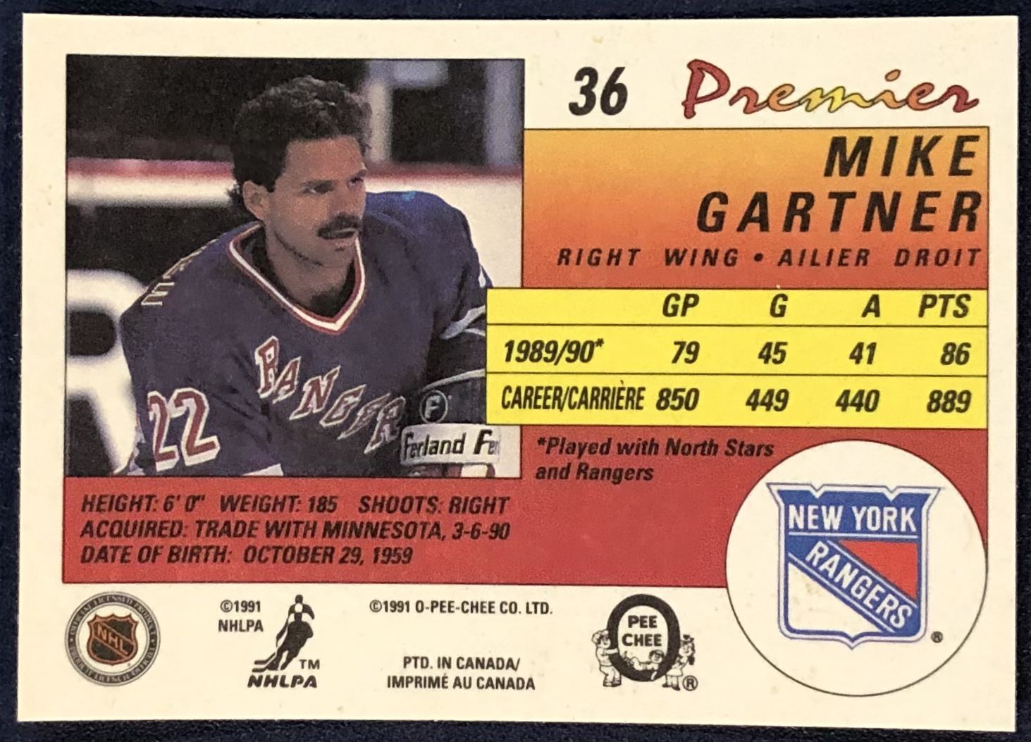 Lot 100 1990-91 O-PEE-CHEE PREMIER NHL MIKE GARTNER (HOF)