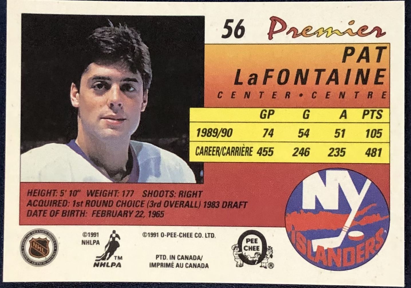 Lot 105 1990-91 O-PEE-CHEE PREMIER NHL PAT LAFONTAINE (HOF)