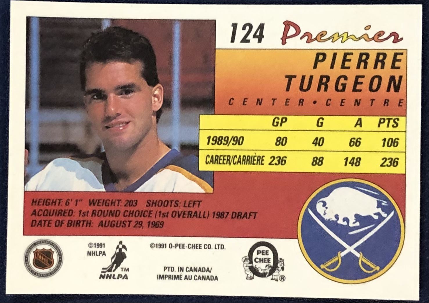 Lot 112 1990-91 O-PEE-CHEE PREMIER NHL PIERRE TURGEON (HOF)