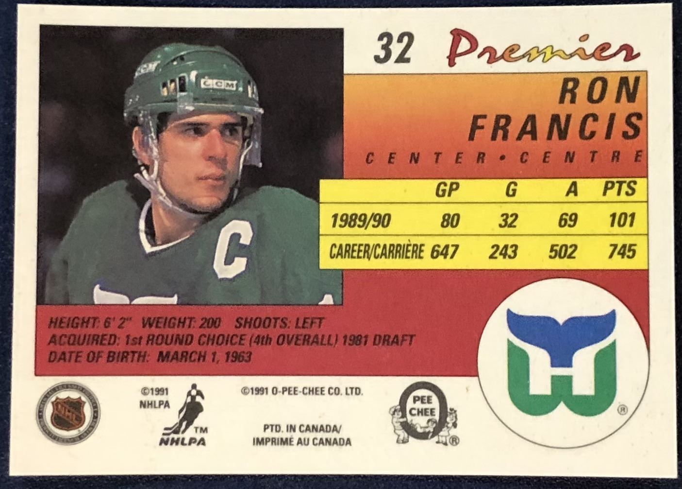 Lot 119 1990-91 O-PEE-CHEE PREMIER NHL RON FRANCIS (HOF)