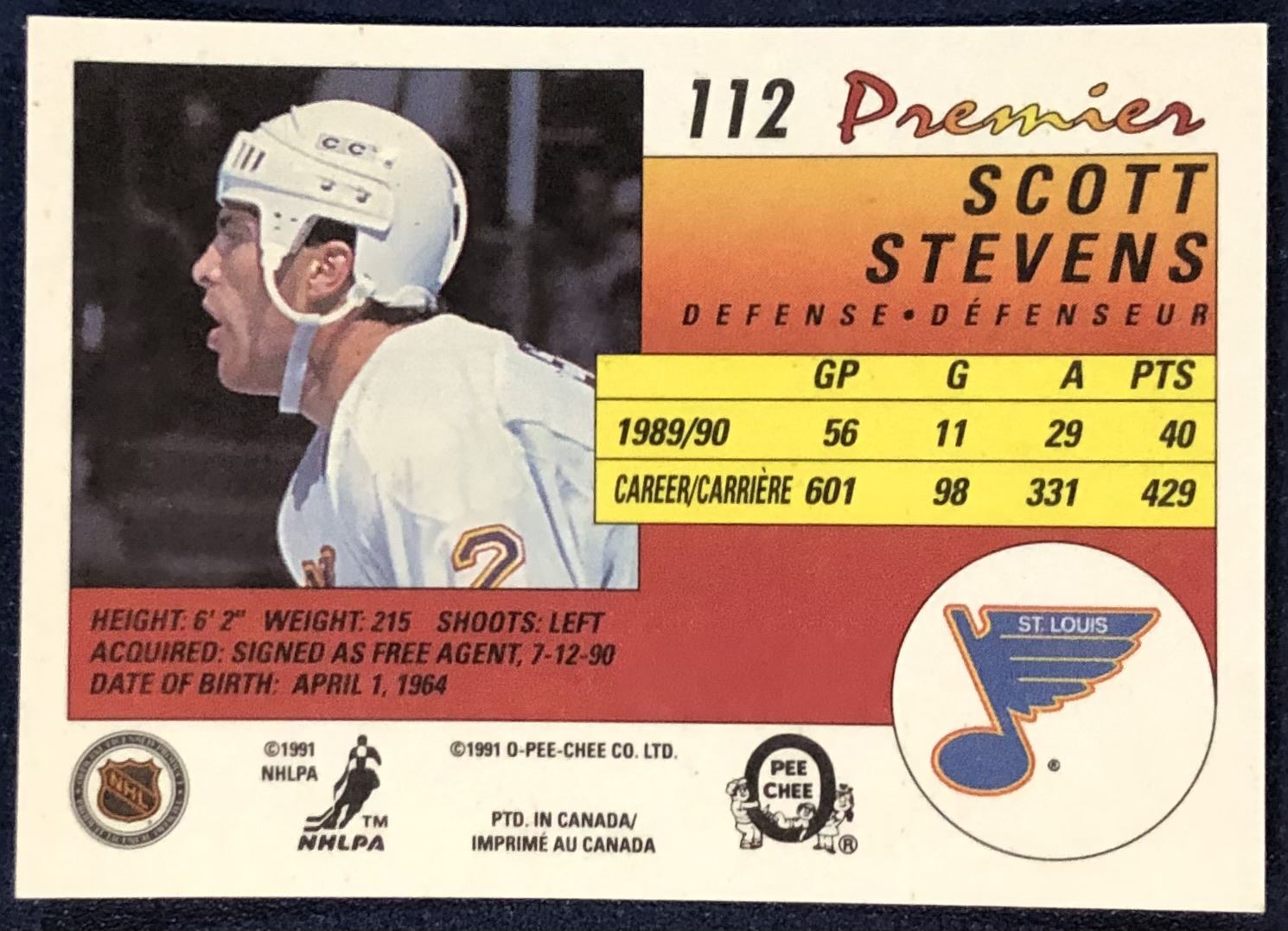Lot 120 1990-91 O-PEE-CHEE PREMIER NHL SCOTT STEVENS (HOF)