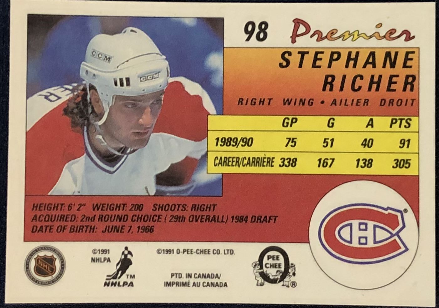 Lot 122 1990-91 O-PEE-CHEE PREMIER NHL STEPHANE RICHER