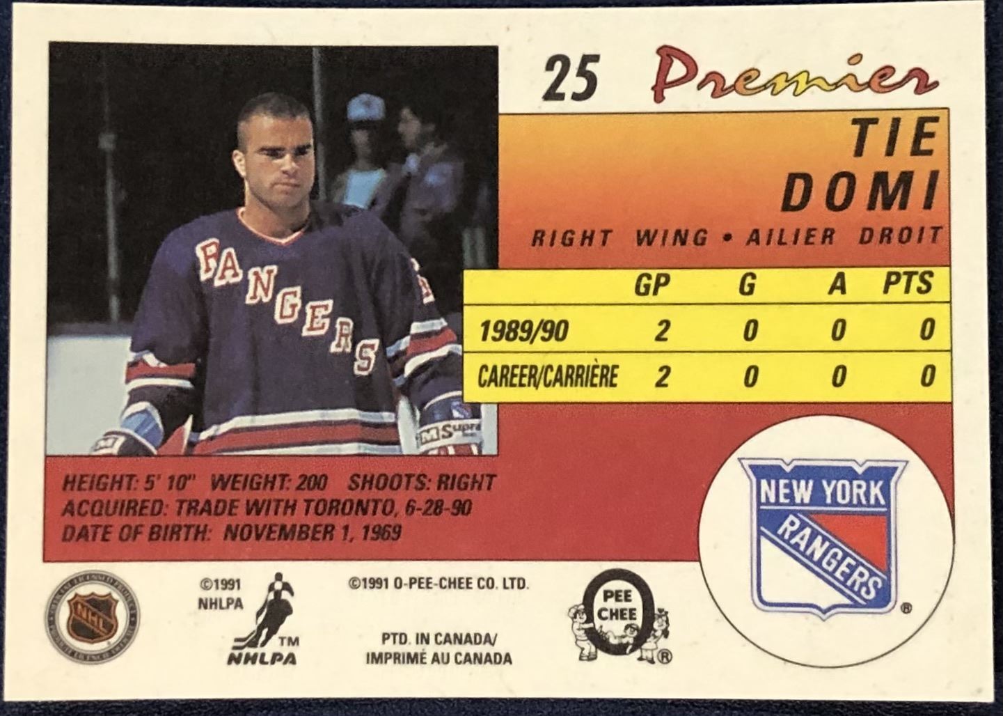 Lot 126 1990-91 O-PEE-CHEE PREMIER NHL TIE DOMI ROOKIE CARD