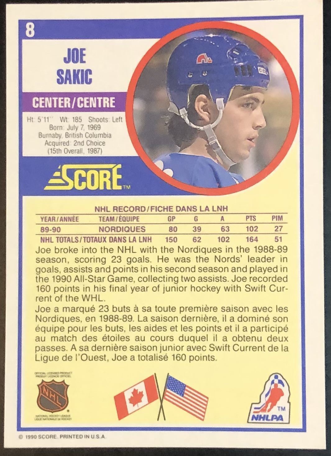 Lot 135 1990-91 SCORE JOE SAKIC (HOF)