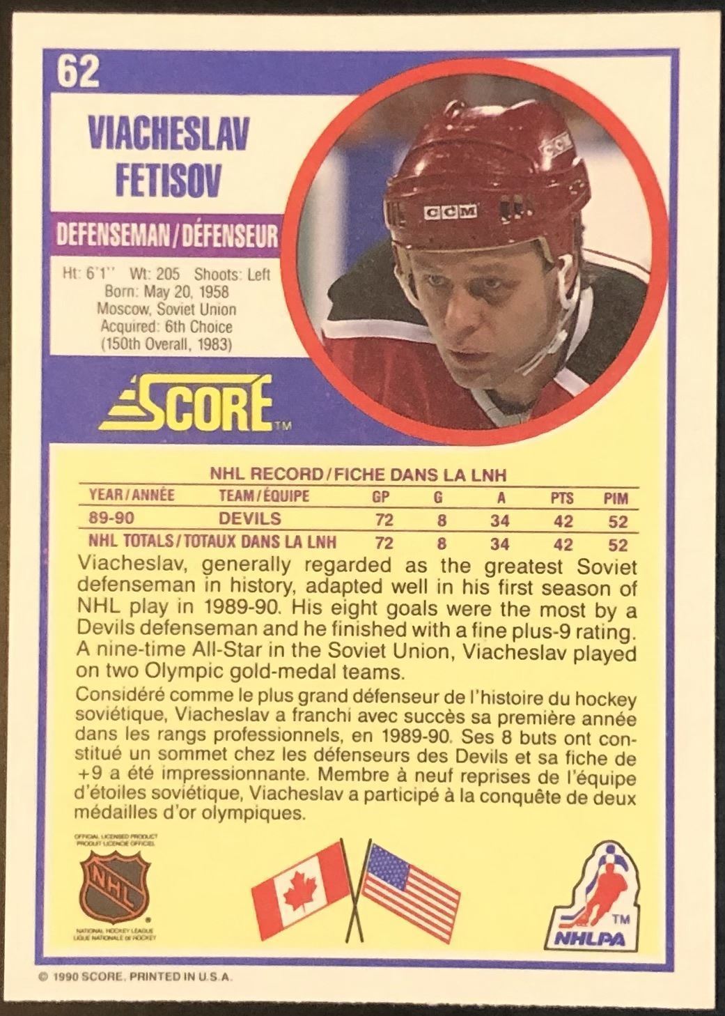 Lot 142 1990-91 SCORE SLAVA FETISOV (HOF) ROOKIE CARD