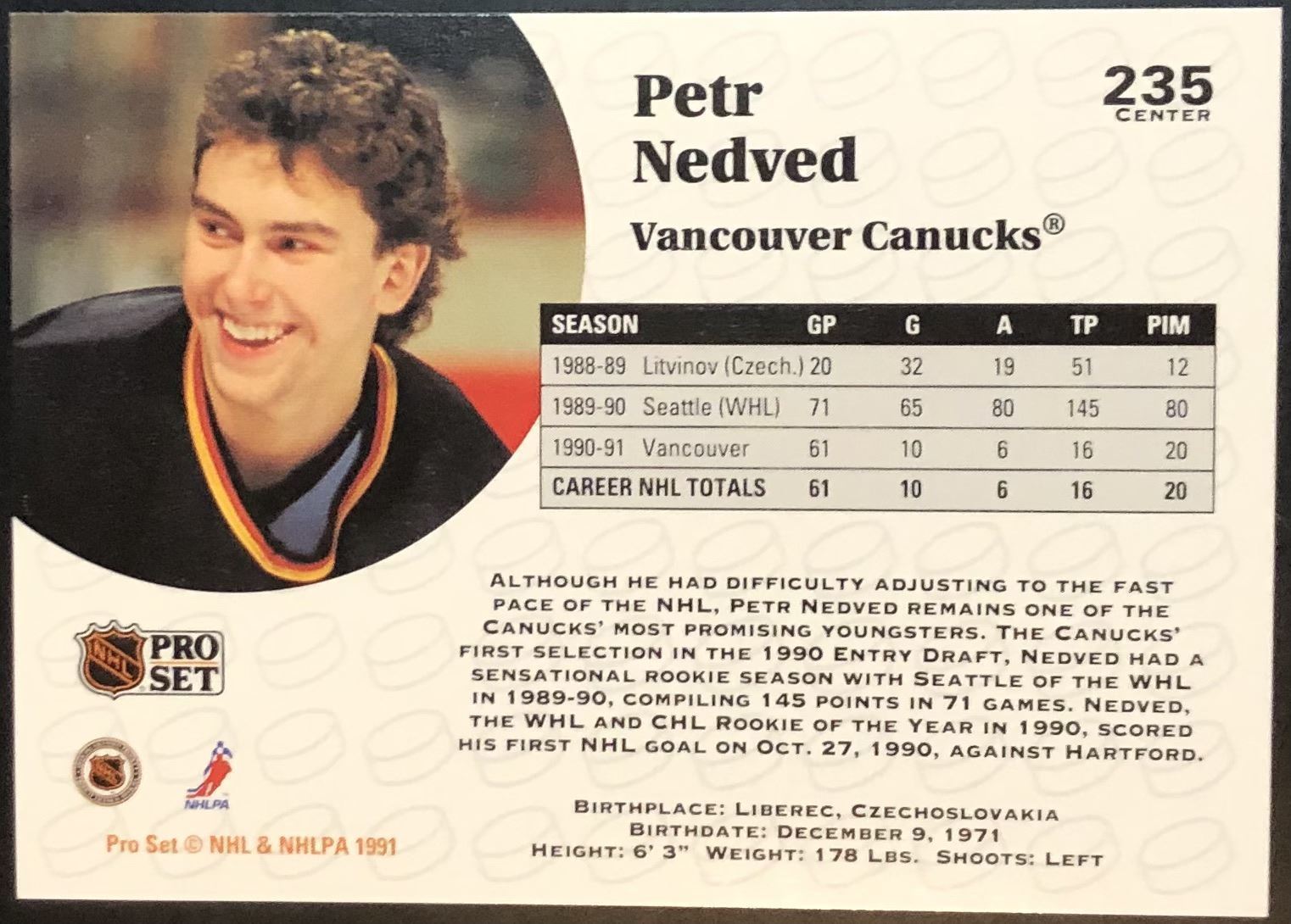 Lot 163 1991-92 PRO SET PETR NEDVED ROOKIE CARD