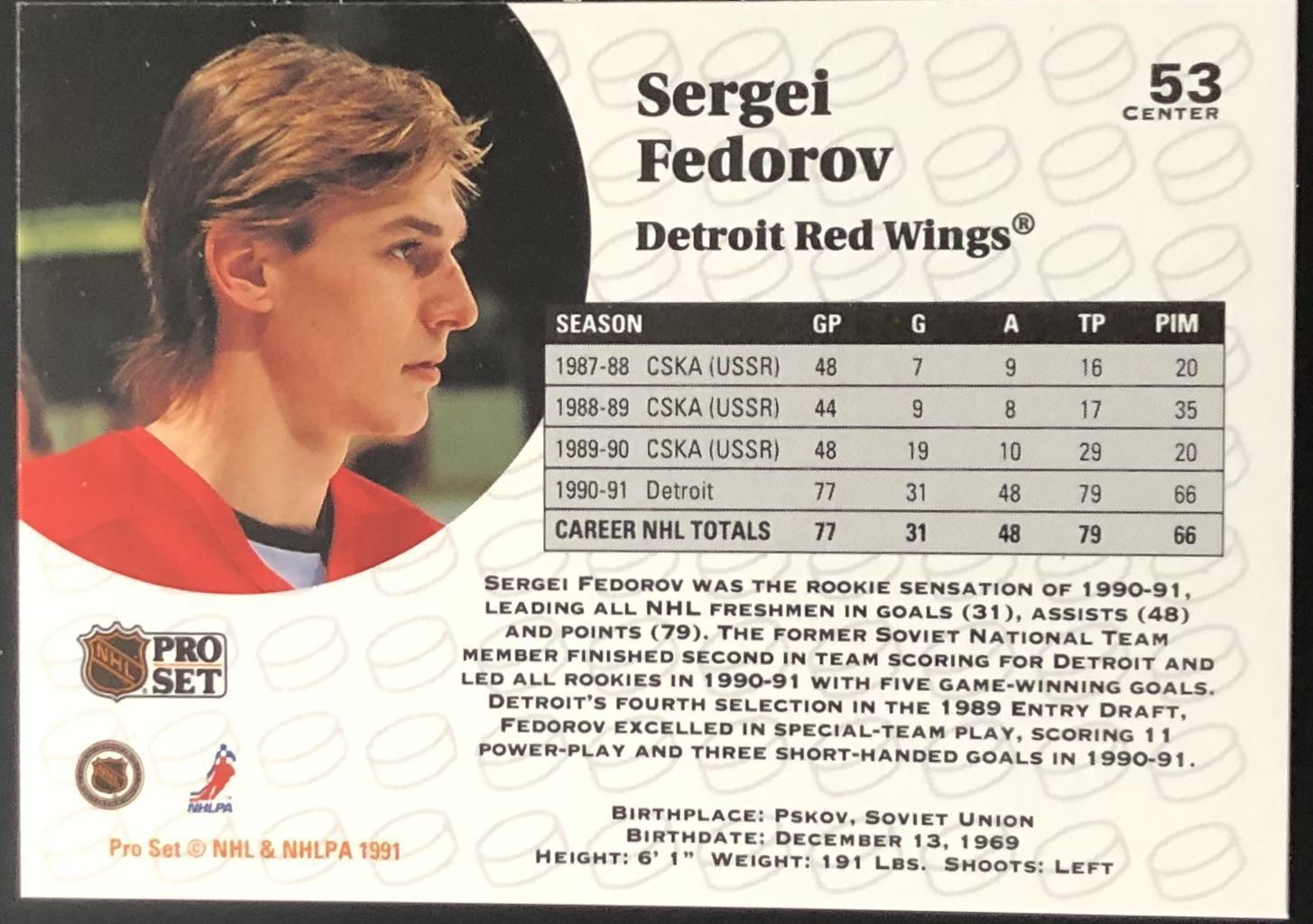 Lot 165 1991-92 PRO SET SERGEI FEDEROV (HOF) ROOKIE CARD