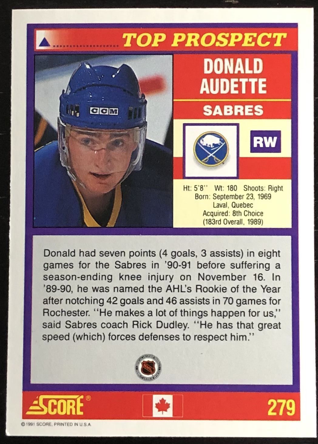 Lot 170 1991-92 SCORE DONALD AUDETTE ROOKIE CARD