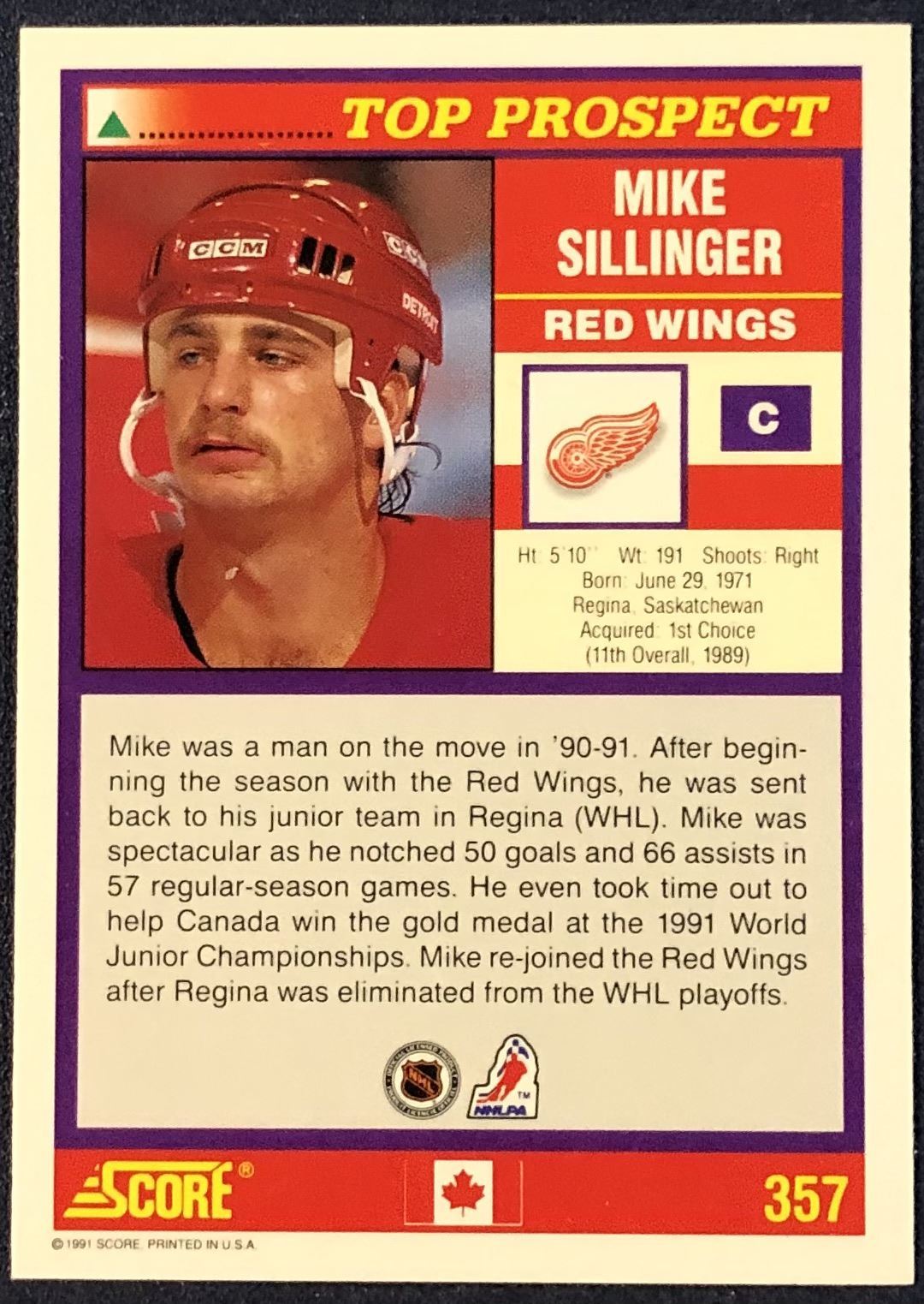 Lot 176 1991-92 SCORE MIKE SILLINGER ROOKIE CARD
