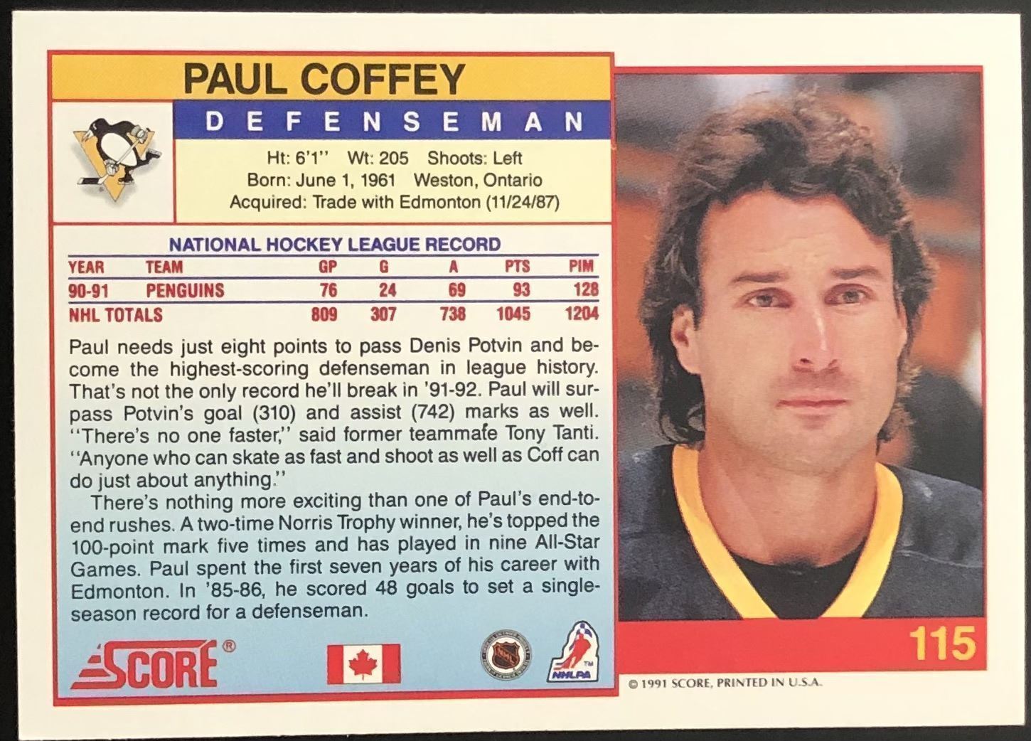 Lot 178 1991-92 SCORE PAUL COFFEY (HOF)