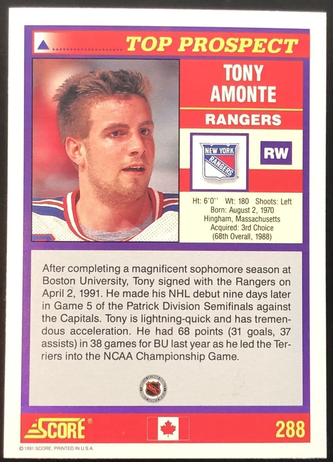Lot 181 1991-92 SCORE TONY AMONTE ROOKIE CARD