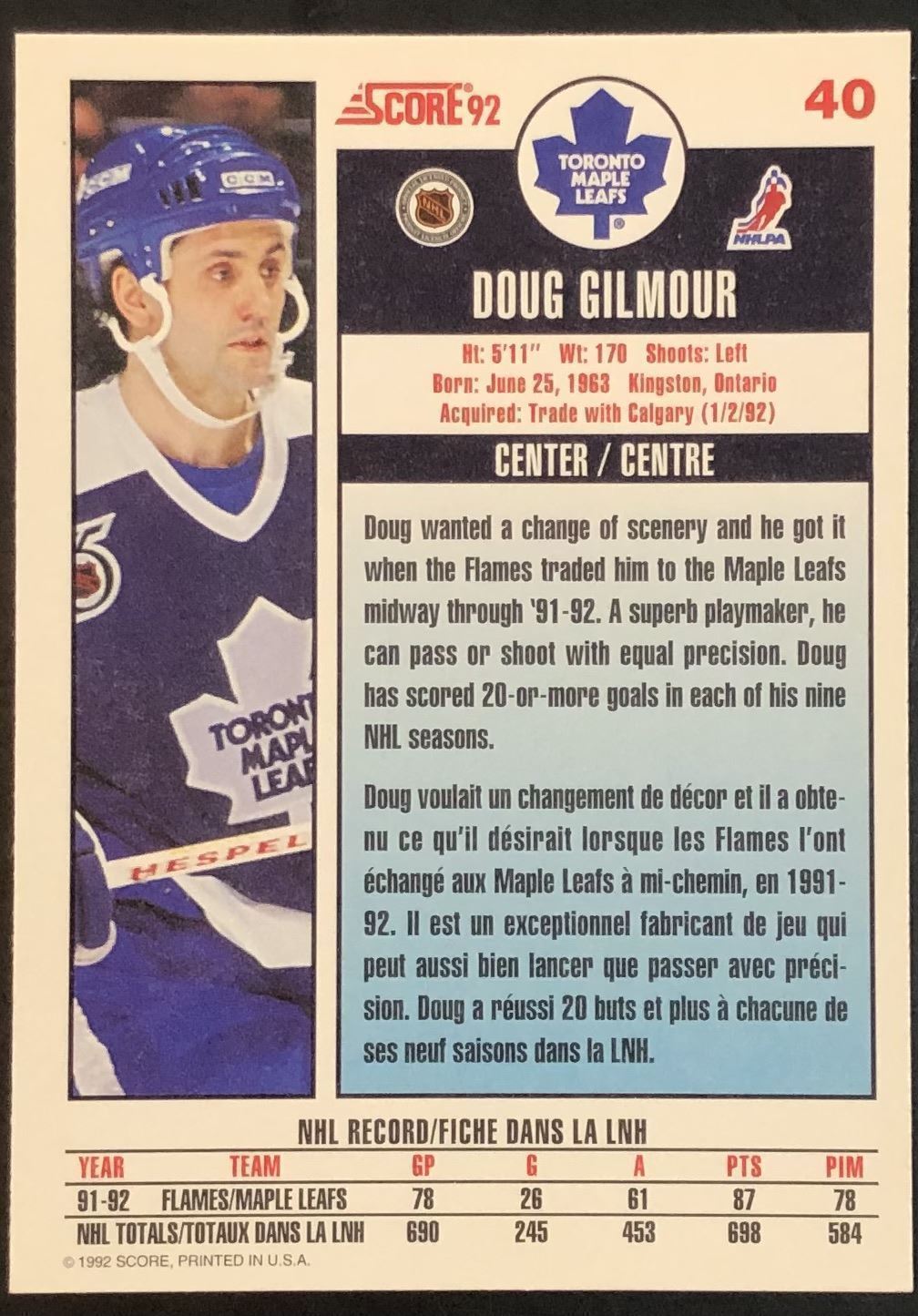 Lot 197 1992-93 SCORE DOUG GILMOUR (HOF)