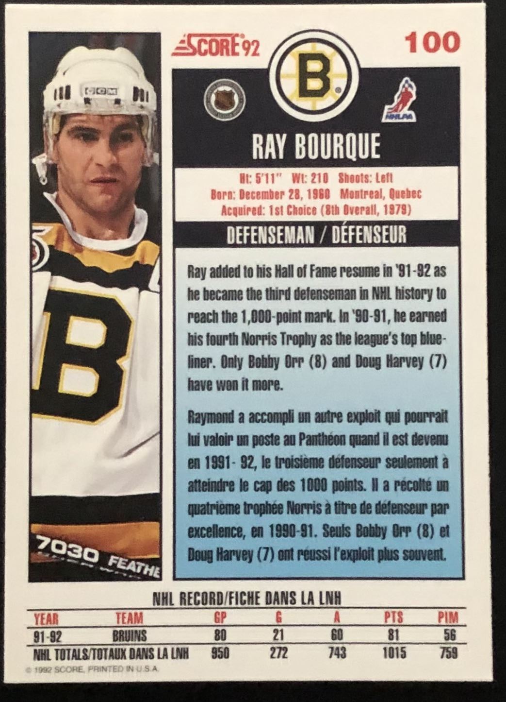 Lot 204 1992-93 SCORE RAY BOURQUE (HOF)