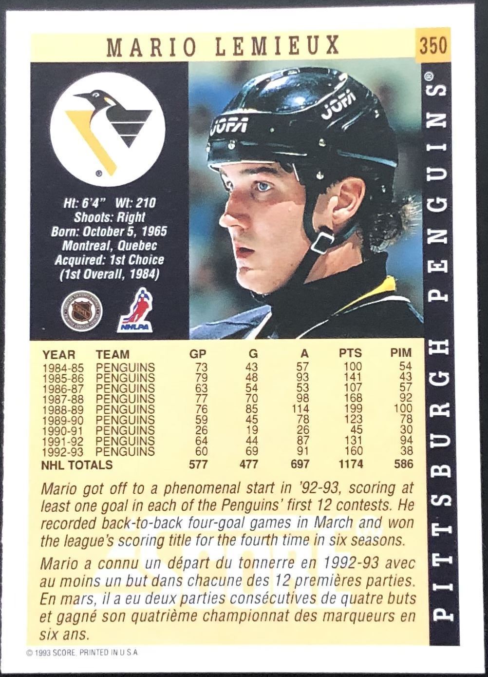 Lot 217 1993-94 SCORE MARIO LEMIEUX (HOF)