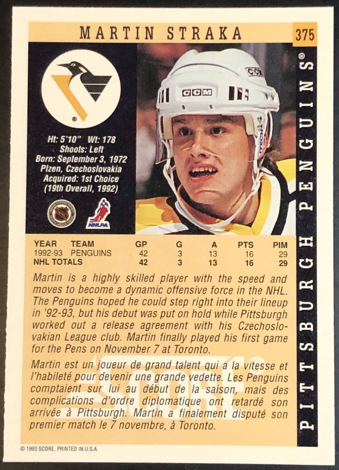 Lot 218 1993-94 SCORE MARTIN STRAKA ROOKIE CARD