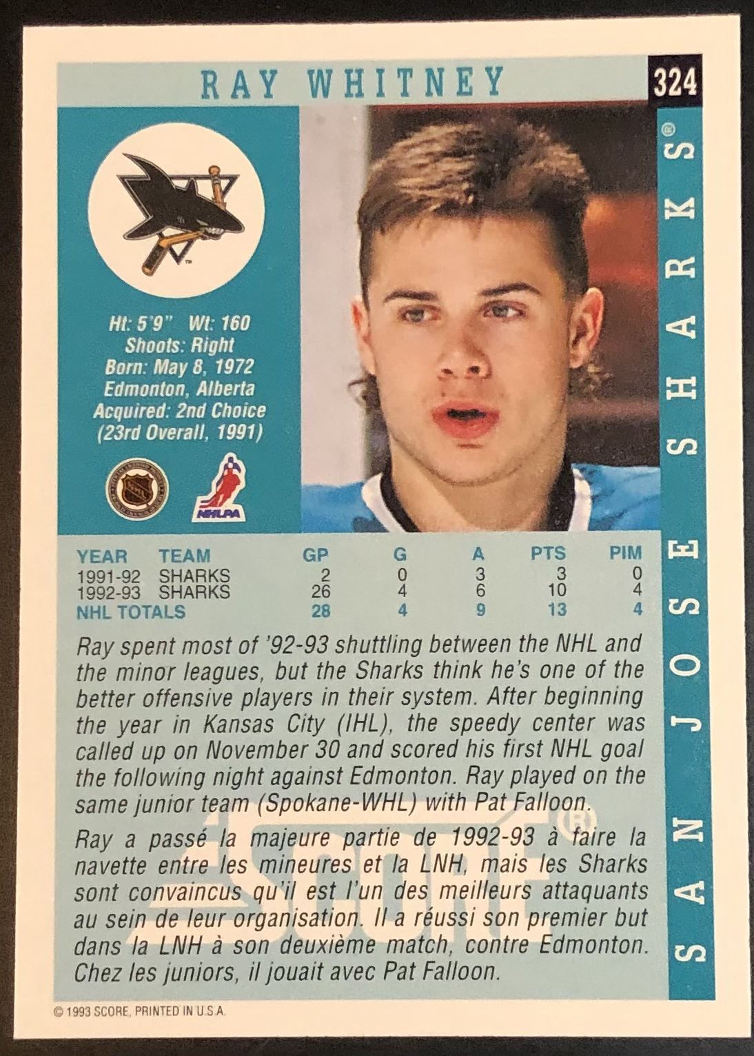 Lot 223 1993-94 SCORE RAY WHITNEY ROOKIE CARD