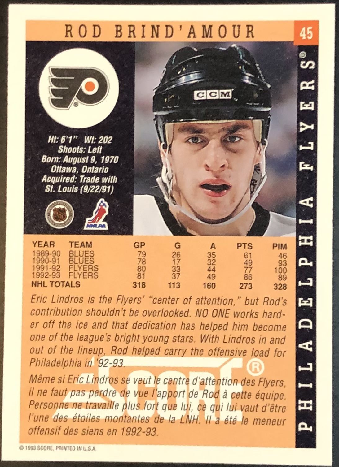 Lot 225 1993-94 SCORE ROD BRIND'AMOUR (HOF)
