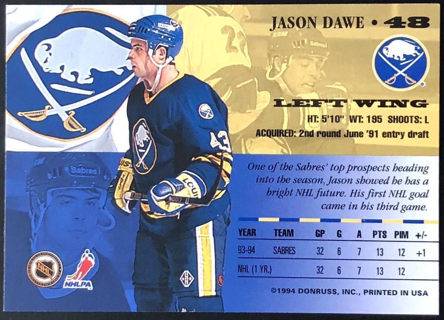 Lot 234 1994-95 LEAF JASON DAWES ROOKIE CARD