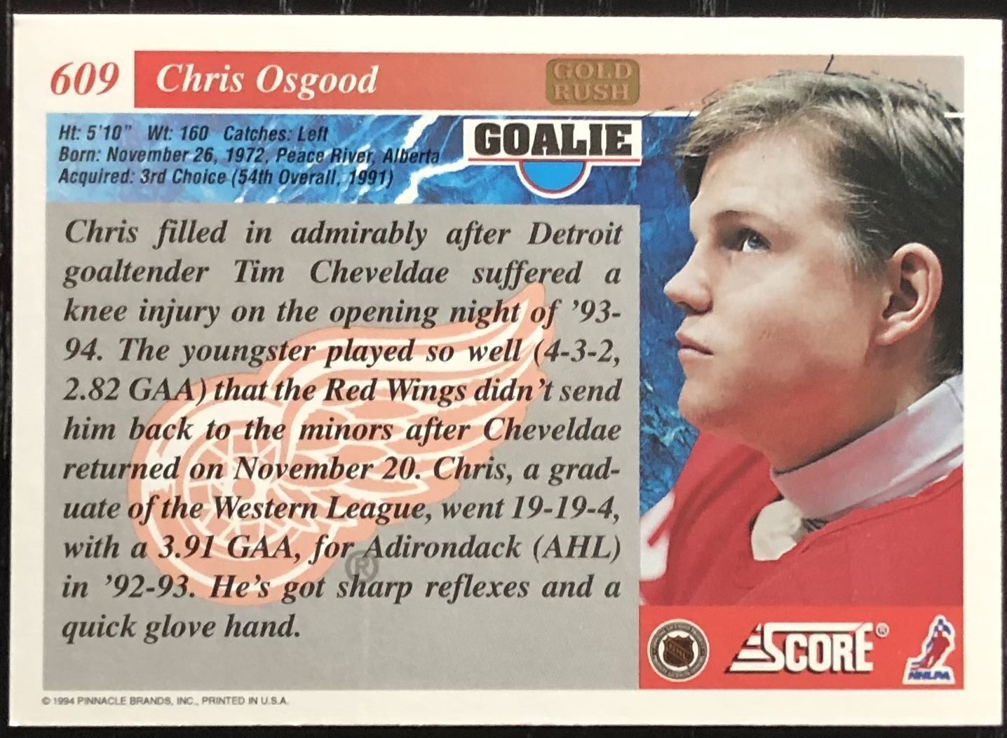 Lot 246 1994-95 SCORE GOLD RUSH CHRIS OSGOOD ROOKIE CARD