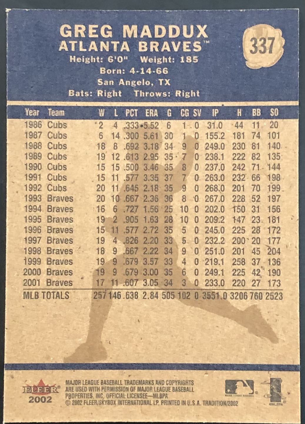 Lot 252 2002 FLEER TRADITION GREG MADDUX (HOF)