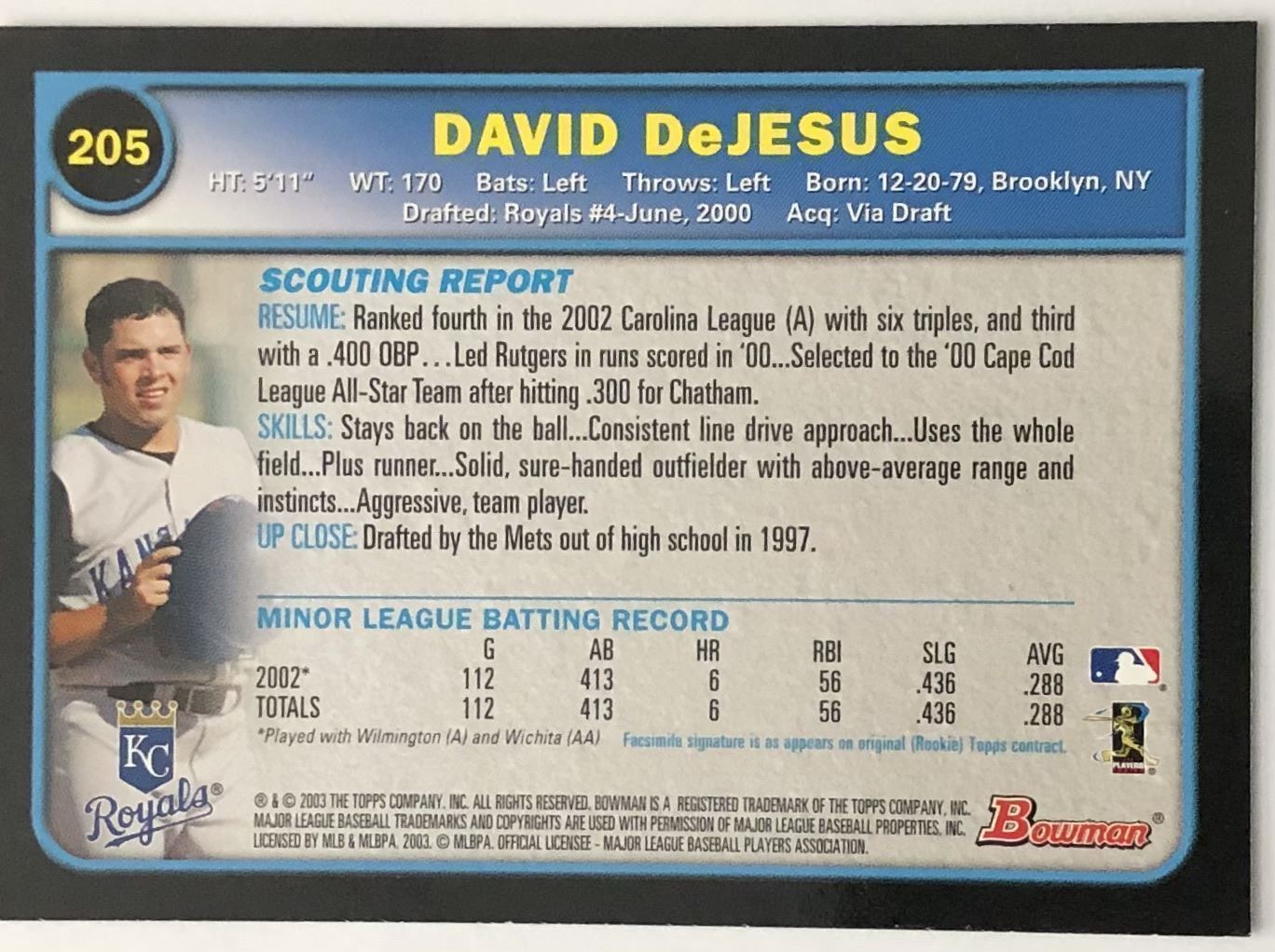 Lot 253 2003 BOWMAN DAVID DeJESUS ROOKIE CARD