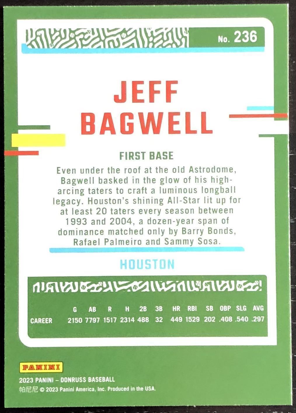 Lot 270 2023 DONRUSS JEFF BAGWELL (HOF)