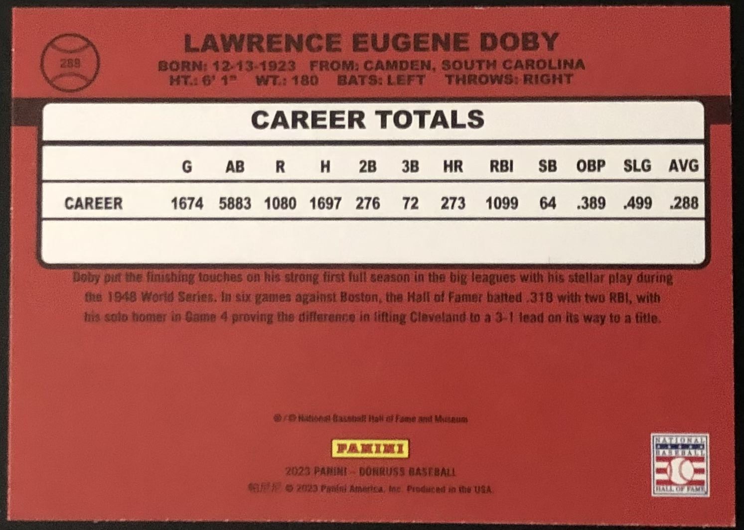 Lot 271 2023 DONRUSS LARRY DOBY (HOF)