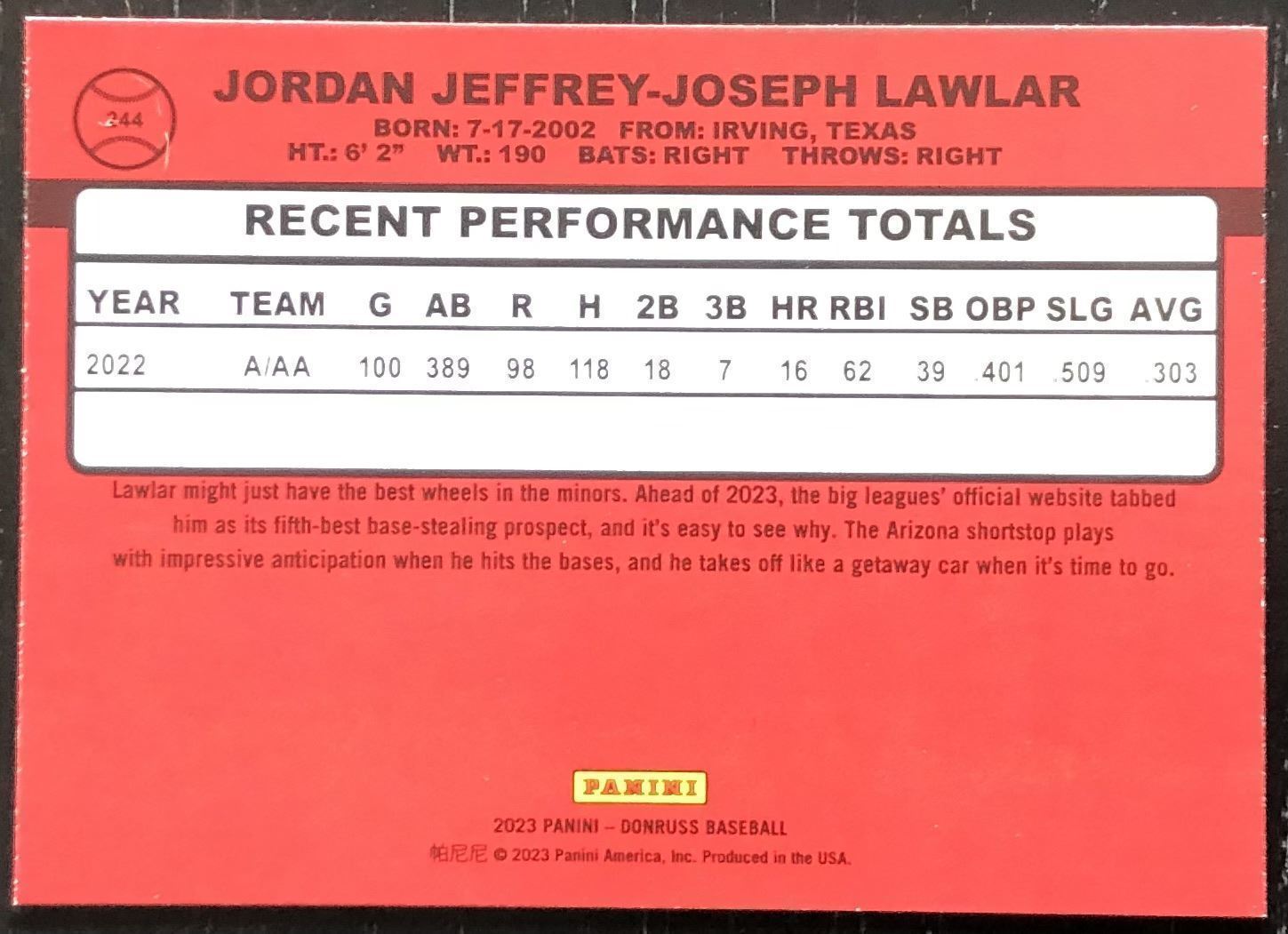 Lot 273 2023 DONRUSS RETRO JORDAN LAWLAR ROOKIE - ERROR CARD